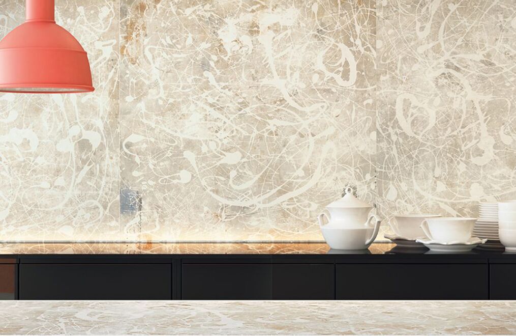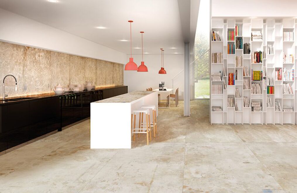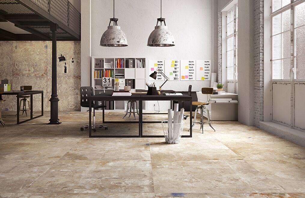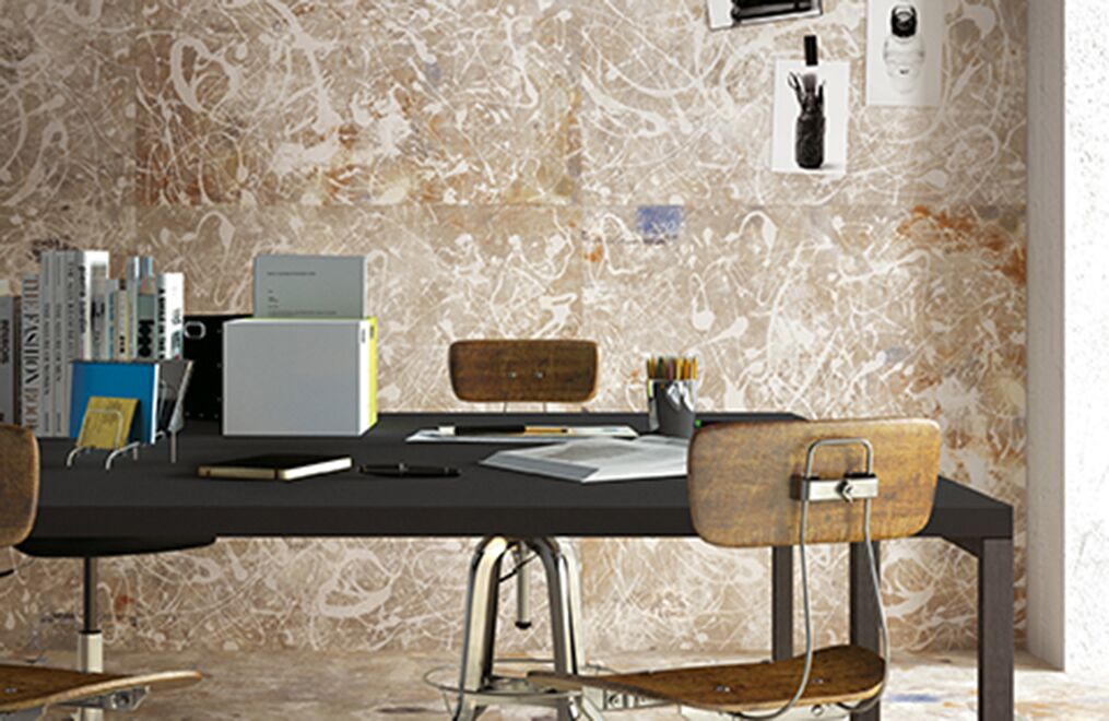 The cement effect meets the signs of a “creative aged effect” expressed by the changes in the shades of colour and by the free and almost “painted” decoration: stratifications of material and new colors that exude design, art and craftsmanship.