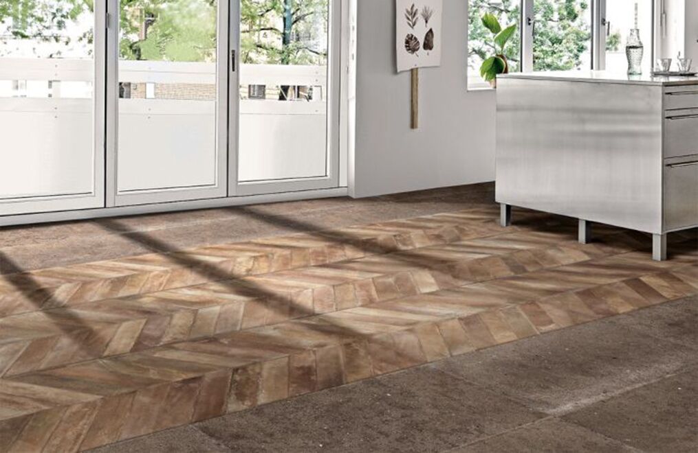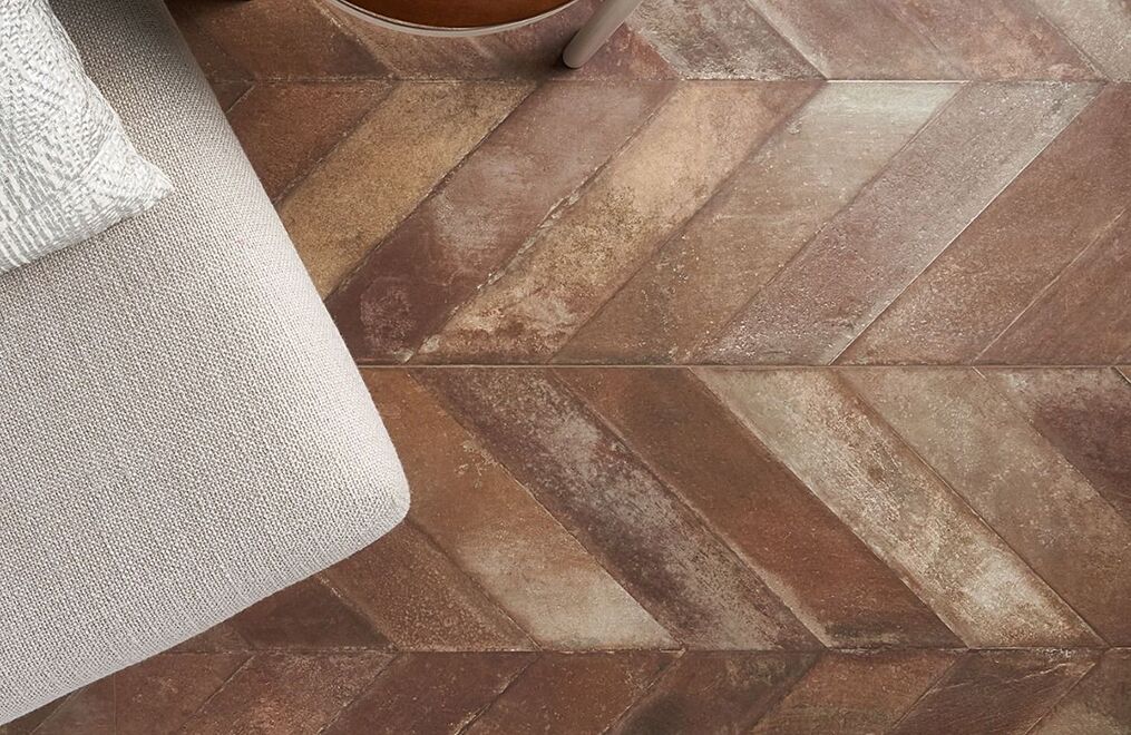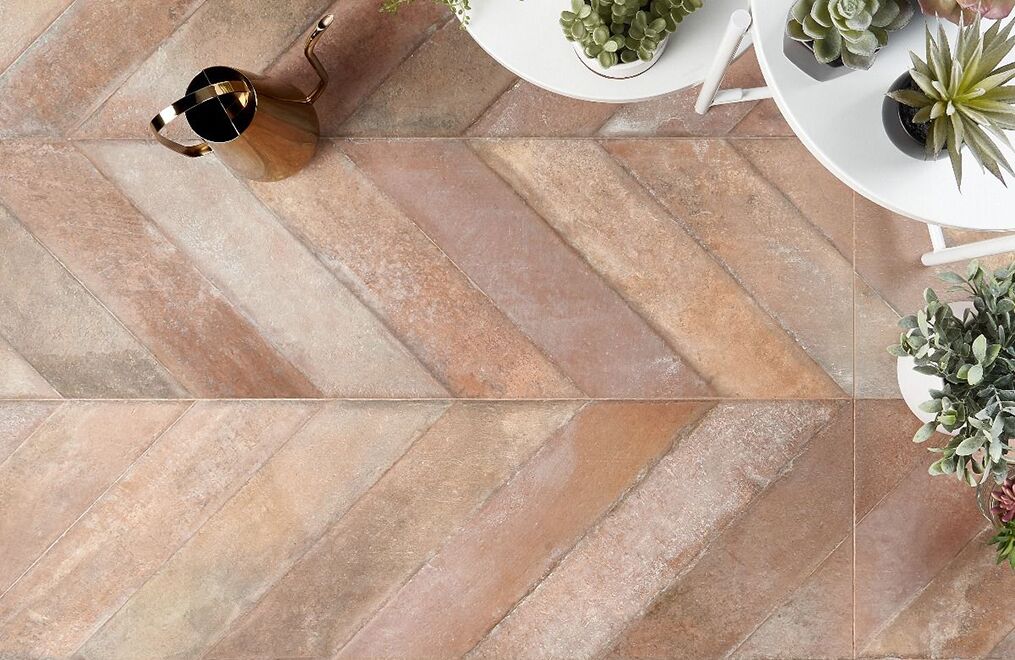 Inspired by the sculptural terraces and cobbled streets of Italy, the Chevron Collection creates a dramatically new visual, breathing new life into an ancient design. These large-format 24” x 48″ porcelain tiles replicate the sunbaked appearance of terra cotta with soft color variations and a natural finish, while the chevron pattern provides a modern iteration to this timeless classic. This collection is available in 4 colorways, with 2 earthy colorways that reinforce the traditional Italian terra cotta style alongside white and gray options that provide a modern minimalist aesthetic. The Chevron tiles fuse old-world charm with contemporary lines and cutting-edge porcelain technology, resulting in an elegant series that can complement any decor and are suitable for walls or floors in commercial and residential spaces.