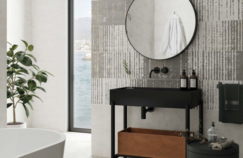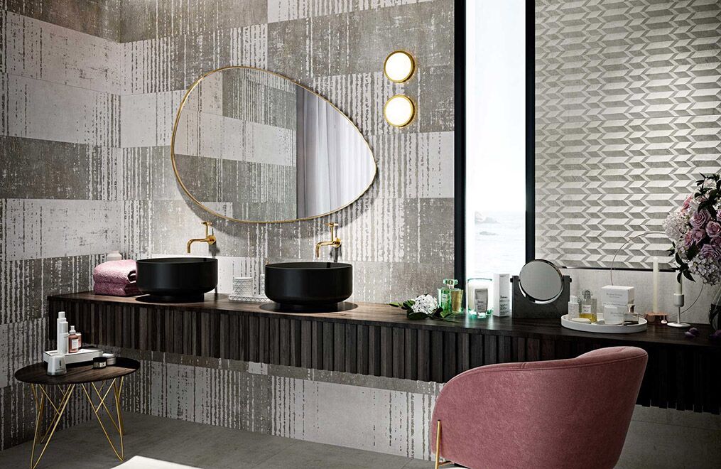 Attila wall is a series of large-format ceramic tiles that combine the style of cement and metal. The graphic decorations on the tiles create depth in any space, while the understated, yet elegant color scheme make it perfect for upscale bathrooms.