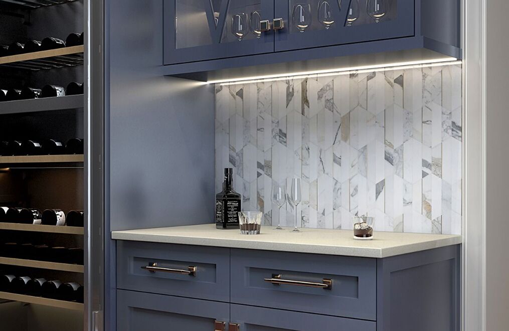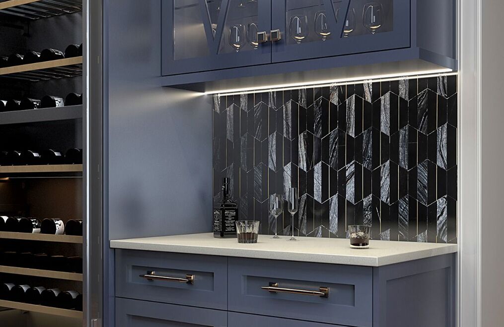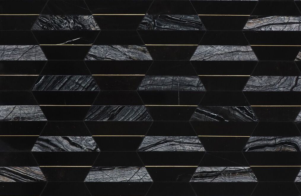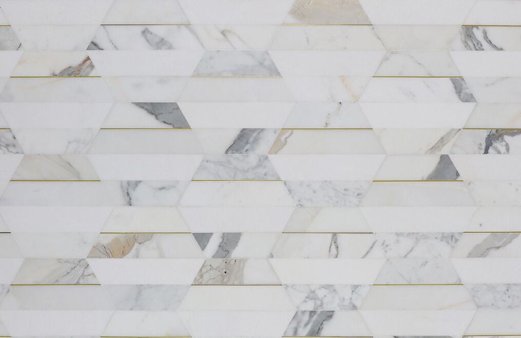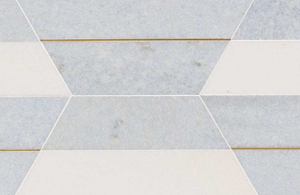 The marble in our Audrey Collection has been sourced from all over the world; it’s carefully selected to accentuate tones and veining patterns. The distinctive brass stripe provides balance and contrast. The tiles are fabricated on highly calibrated machinery for a seamless integration of materials. This unique design inspires a wide array of patterns, promising an enviable, sophisticated installation.