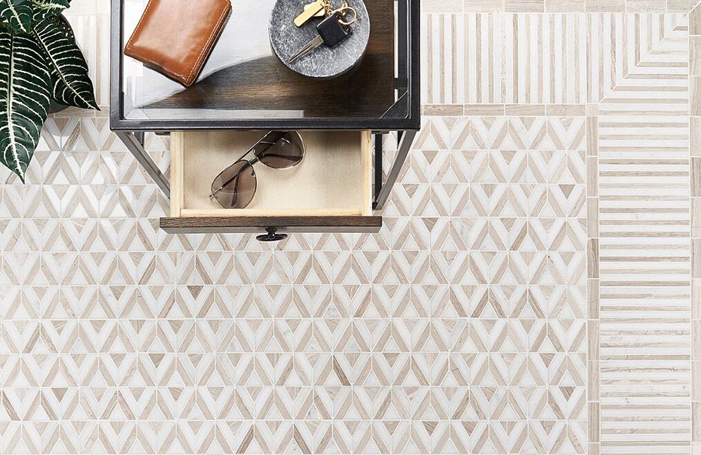 Allow yourself to be transported from modern day to the heart of the 1920s with the Avant Garde Collection. This is an immaculate, marble mosaic collection made from mixed materials and geometric patterns. The mosaics create an element of decadent living with their noticeably luxe aesthetic and detail-driven craftsmanship. Coming in 3 pieces, a linear, triangular, and corner piece, you can create fluid movement in design. Add to powder rooms, hotel lobby floors, or an entryway for sought-after style years to come.