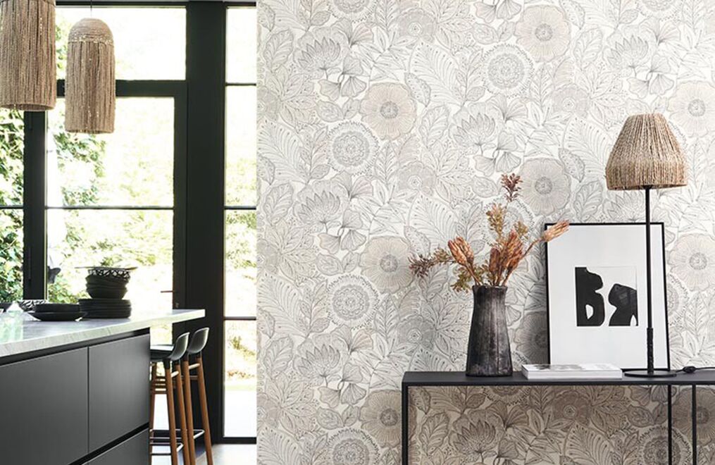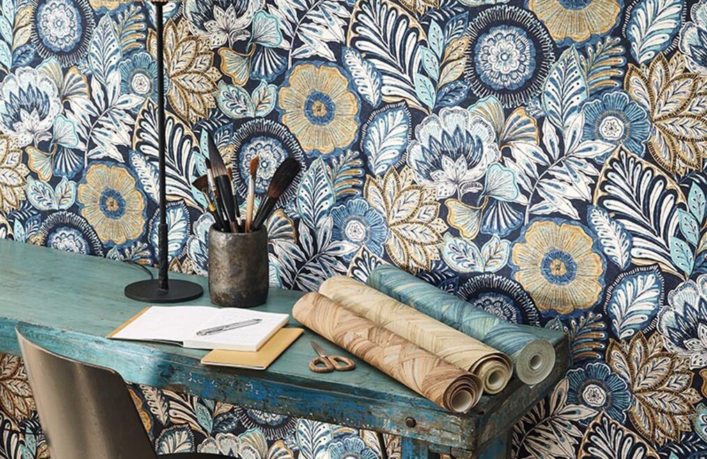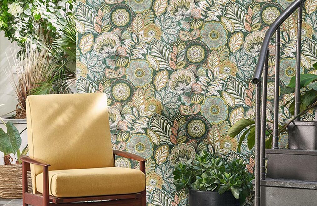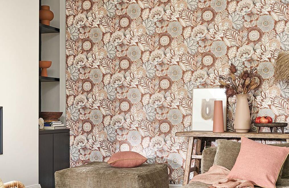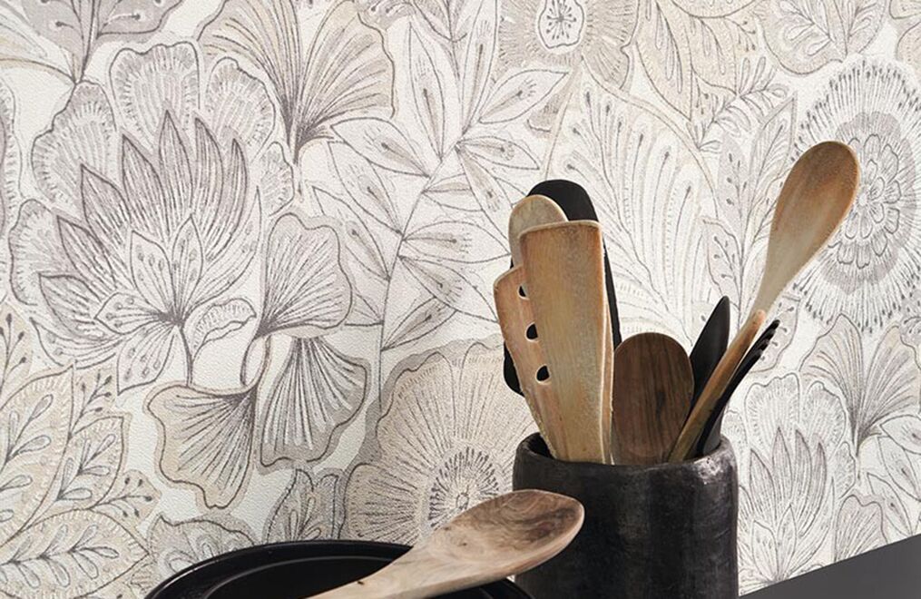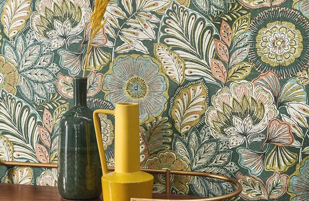 Treat yourself to the mastery of traditional textile painting. Have you heard of batik? This technique of painting on fabric, achieved with wax, has attained the status as a work of art in the workshops of Bali. Discover their mastery in this wallpaper, which features an interlacing of exotic flowers and foliage on a textile-effect background.