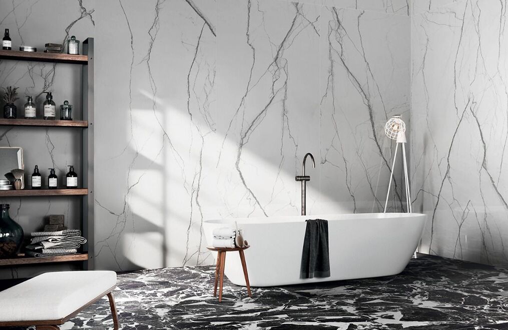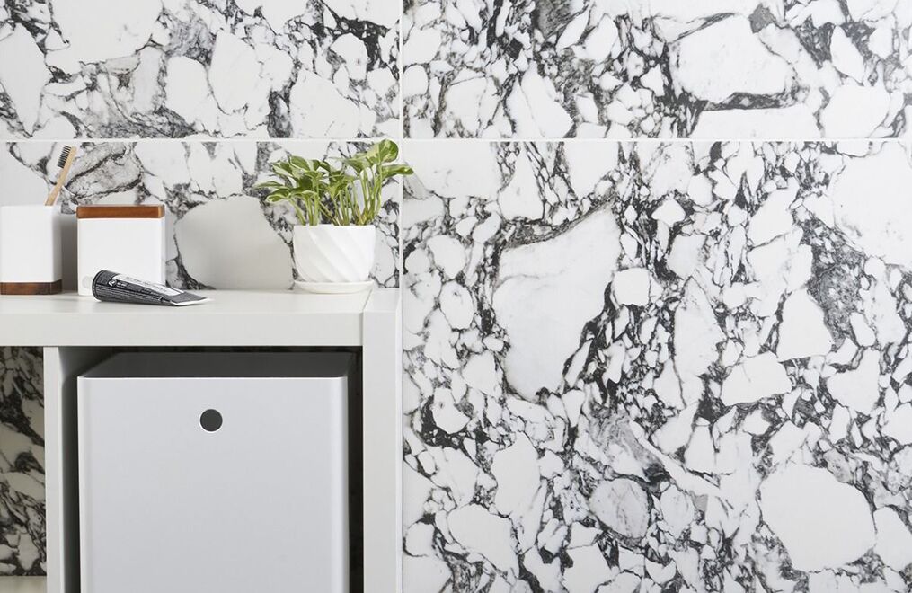 The idea of B&W’s chromatic duality evolves into B&W Marble, the new collection dedicated to Architectural Design. The purity of color of the two opposites of light par excellence, white and black, becomes the background from which a “stone pantone” comes to life, composed of a range of elements more or less regular, recalling the veining of marble.