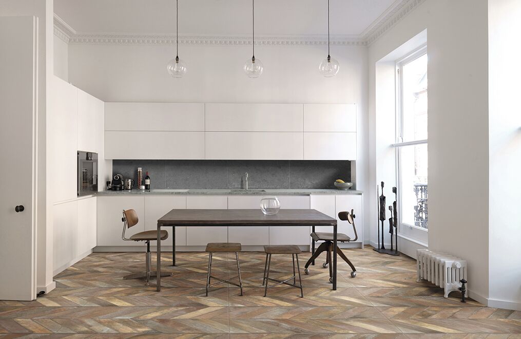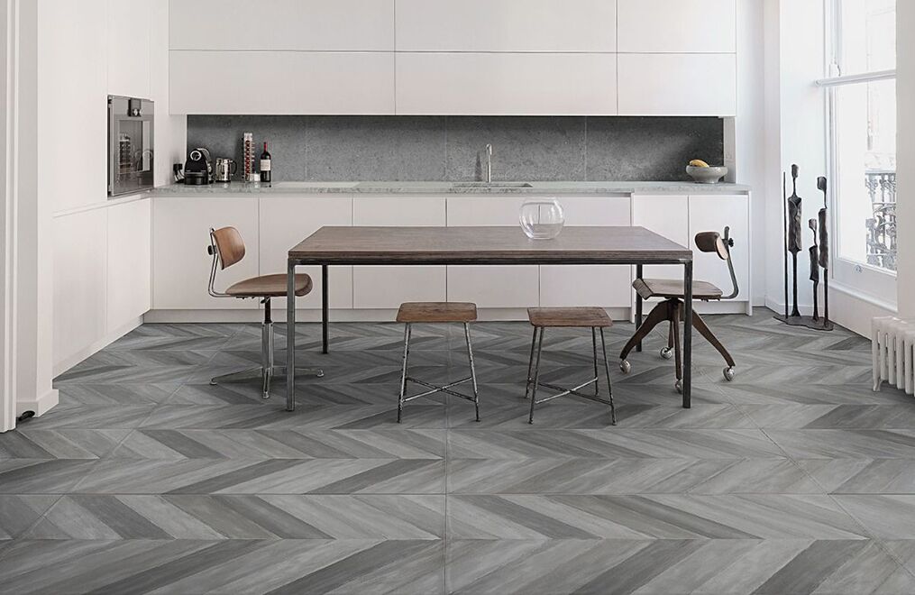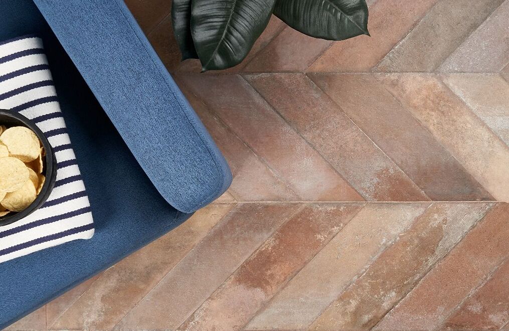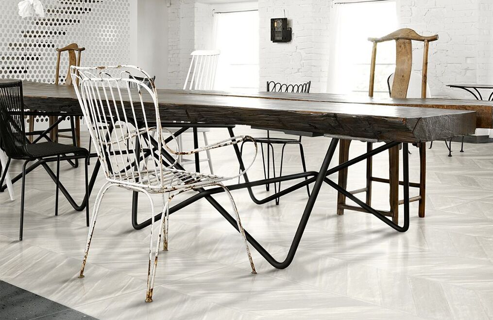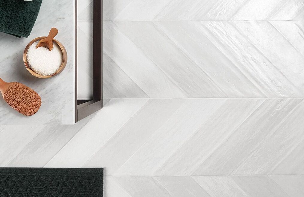 Inspired by the sculptural terraces and cobbled streets of Italy, the Chevron Collection creates a dramatically new visual, breathing new life into an ancient design. These large-format 24” x 48″ porcelain tiles replicate the sunbaked appearance of terra cotta with soft color variations and a natural finish, while the chevron pattern provides a modern iteration to this timeless classic. This collection is available in 4 colorways, with 2 earthy colorways that reinforce the traditional Italian terra cotta style alongside white and gray options that provide a modern minimalist aesthetic. The Chevron tiles fuse old-world charm with contemporary lines and cutting-edge porcelain technology, resulting in an elegant series that can complement any decor and are suitable for walls or floors in commercial and residential spaces.
