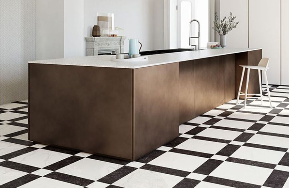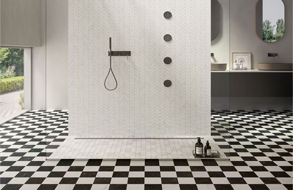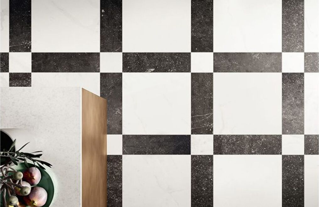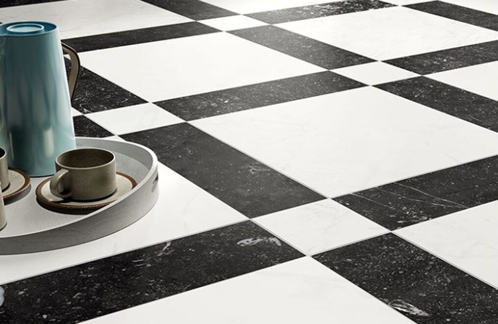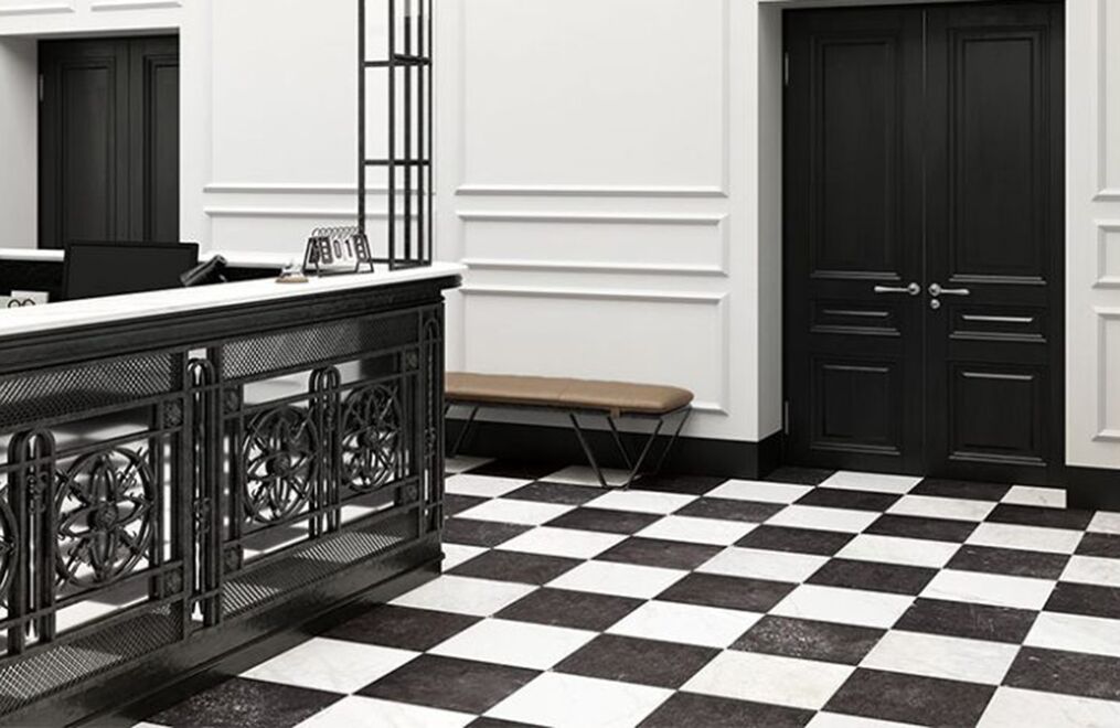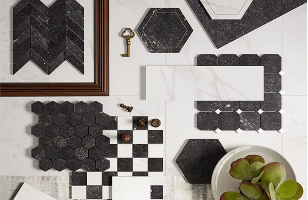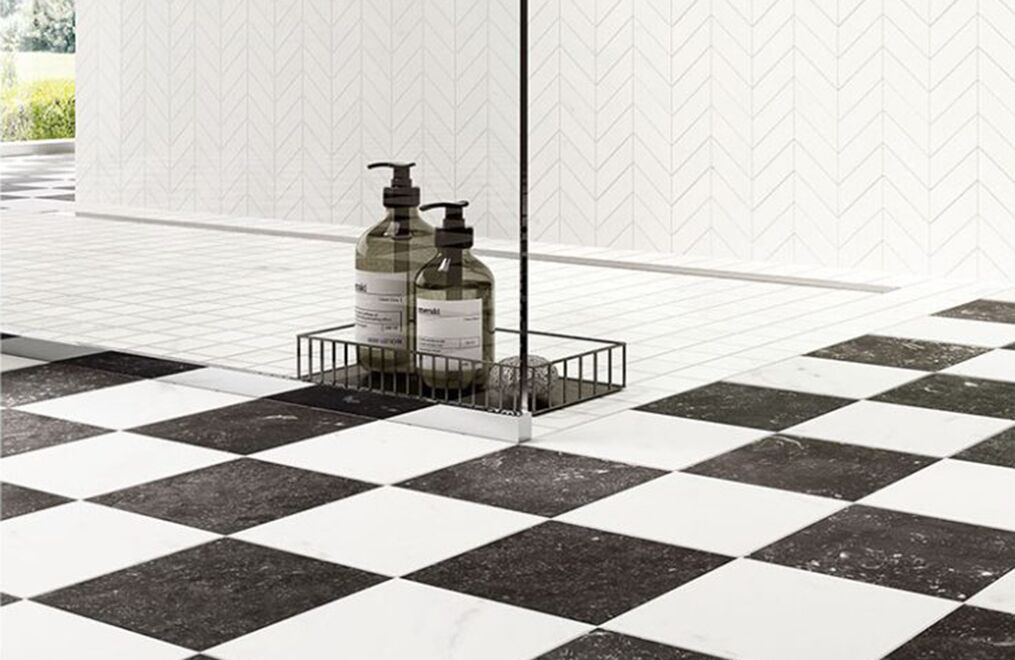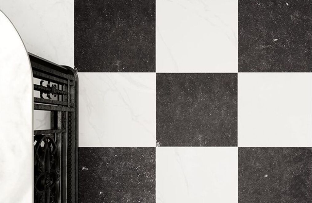 The Concert Series is inspired by the geometric black and white design of the historic Dutch homes in the 1600s. This sophisticated collection of porcelain tiles was born from the artwork of Jan Vermeer, portraying the beauty of Carrara marble white flooring paired with contrasting black bluestones. Available in a range of sizes and unique shapes that can be mixed and match to create your own custom layout.