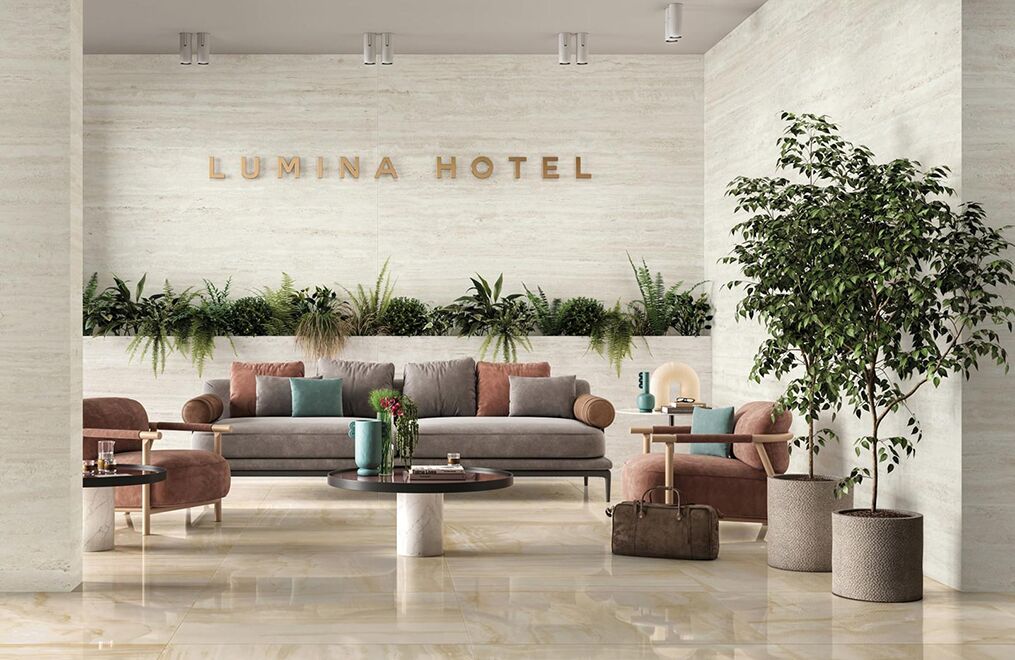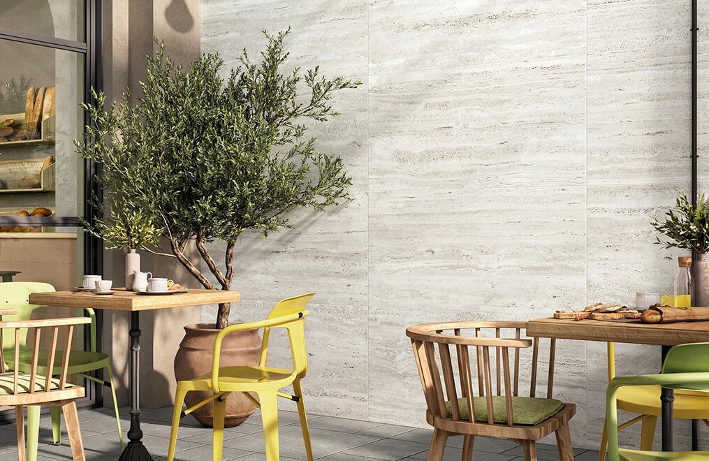 Elysian Travertini is timeless charm, warmth and harmony that enhances many architectural and design styles in a natural and versatile way. The timeless beauty of Elysian Travertini accompanies moments of well-being both indoors and out. It blends elegantly with many materials, including wood, fabric, metal and stone, making it an invaluable element for enhancing any design. The collection also includes 6 mm slabs, ideal for overlaying pre-existing floors of marble, natural stone, or ceramics, eliminating the need for demolition.