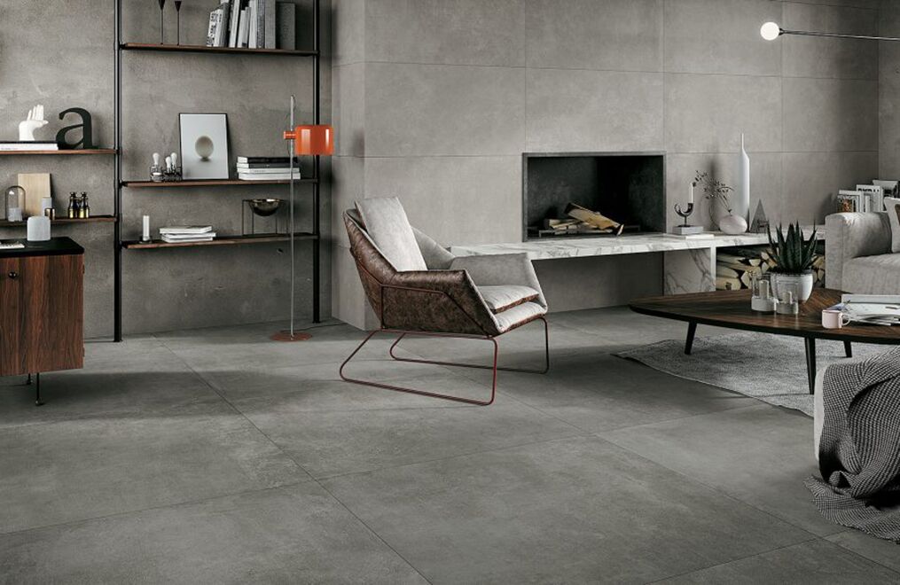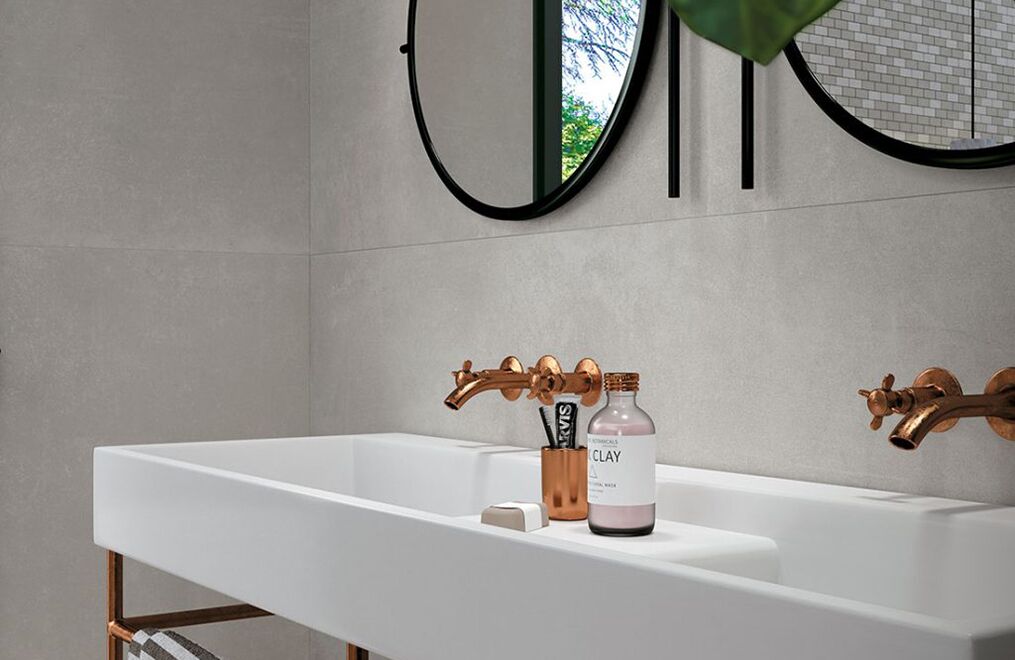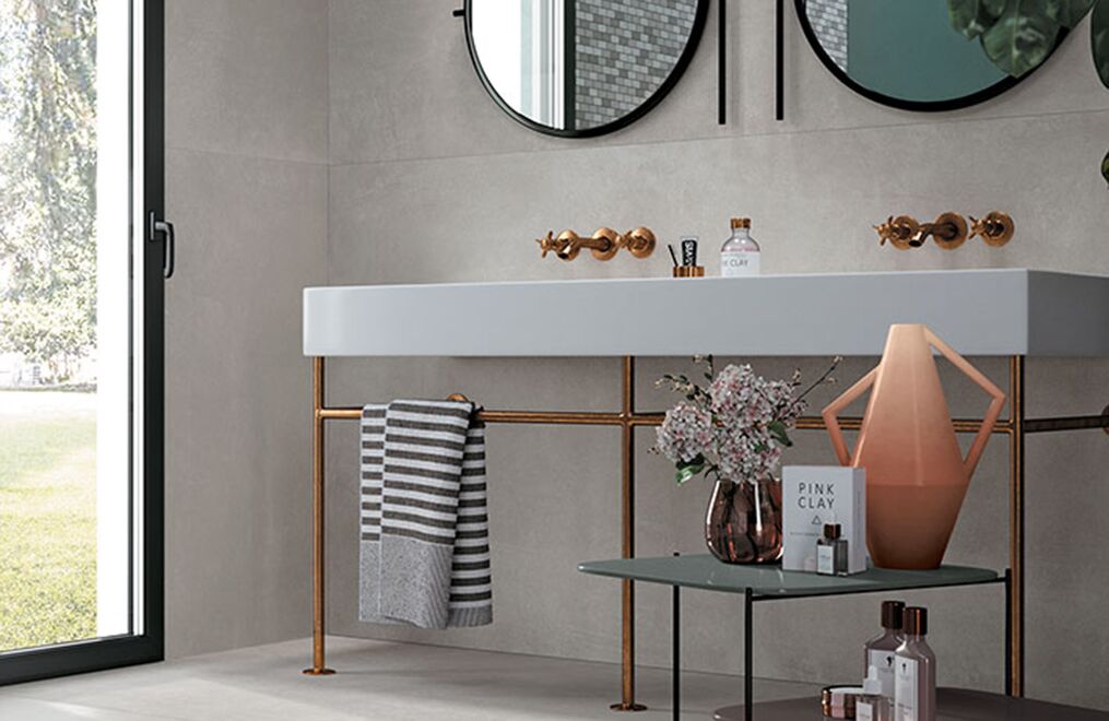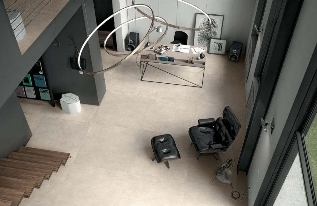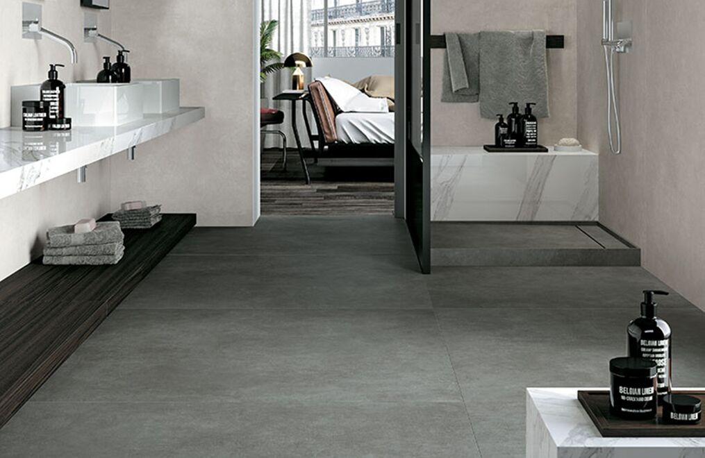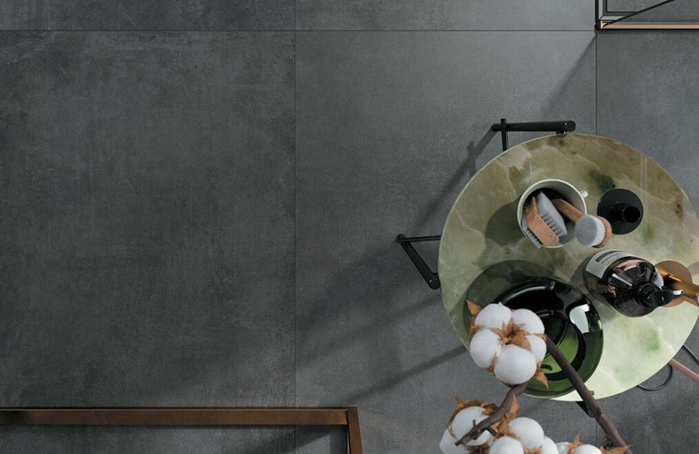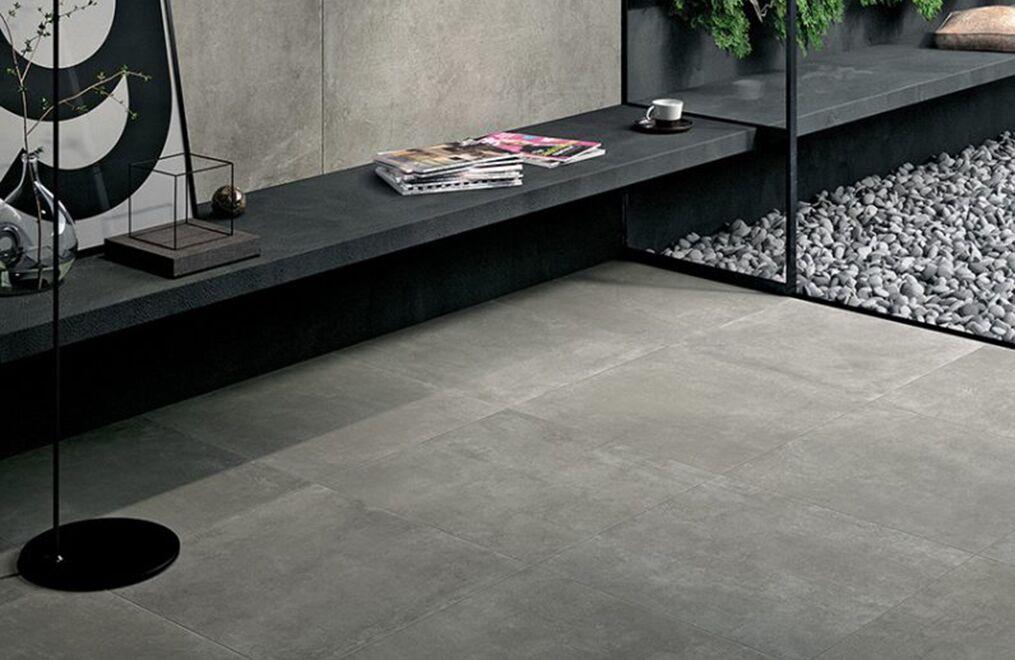 The power of concrete lies in the fact that it is a neutral, exceptionally versatile furnishing material, and in its ability to embody the whole material identity of the ceramic product, transforming it into a container able to bring out the very best in all types of finishes and furnishing elements. Mirage has fully exploited this characteristic feature of spattled cement, coming up with a light, delicate collection with clean-cut, yet profound textures reminiscent of the material in its most typically original guise, enhanced by a careful selection of subtle details.