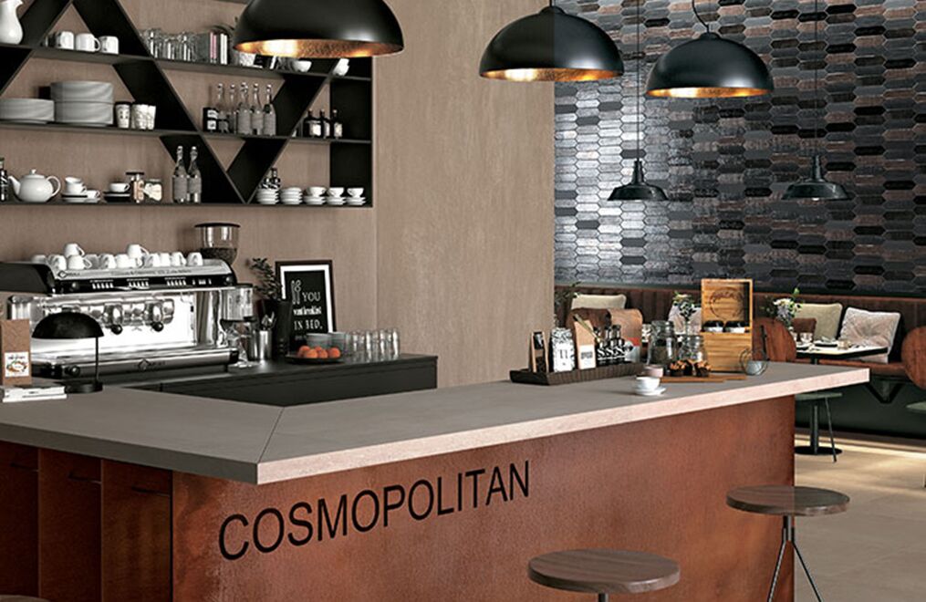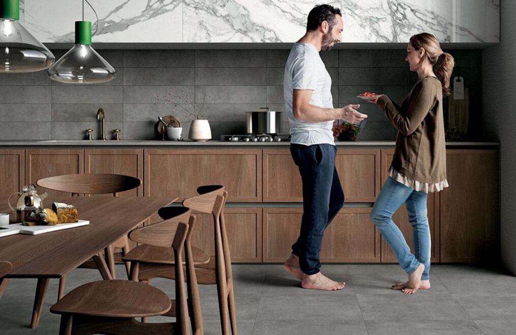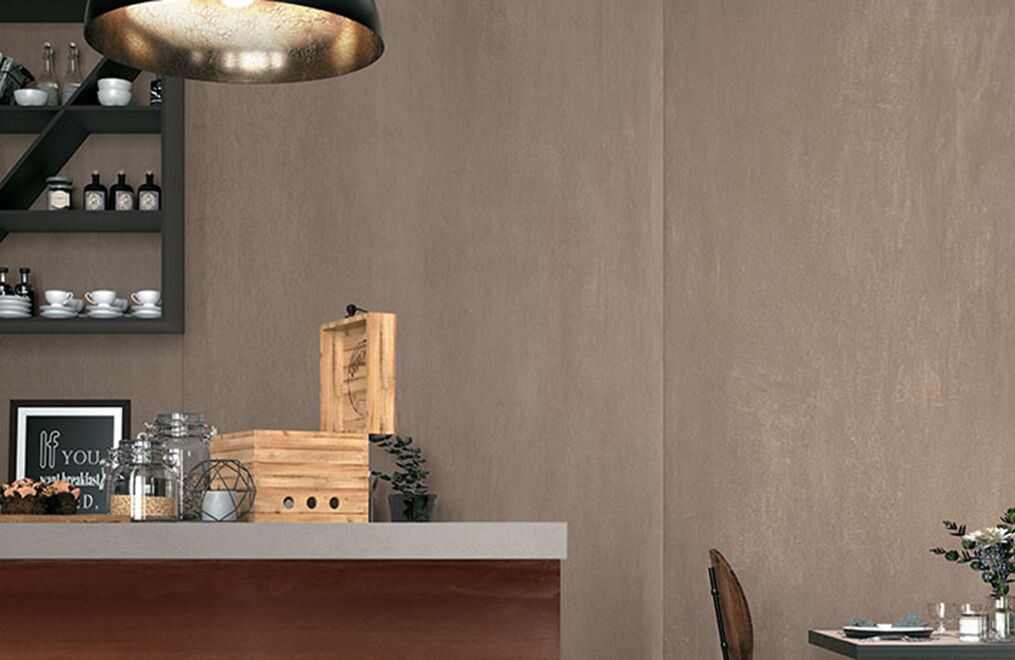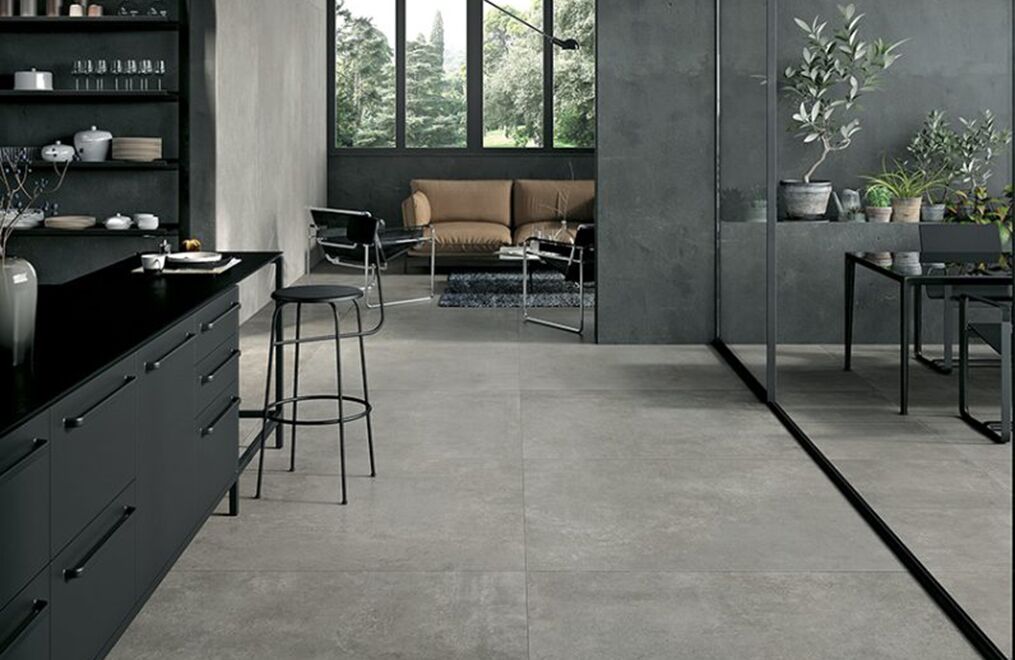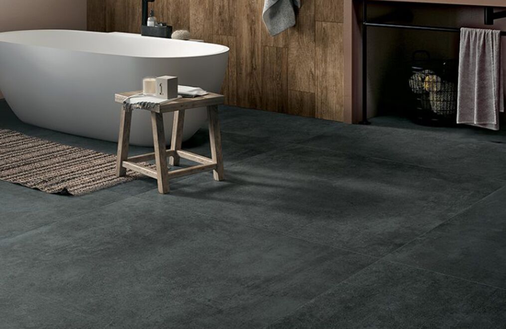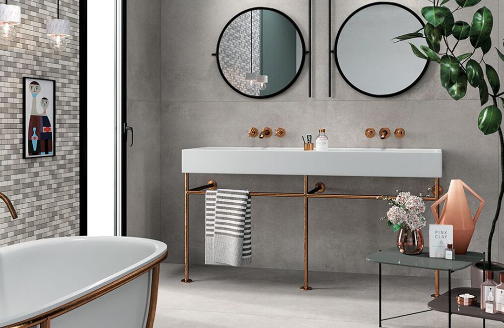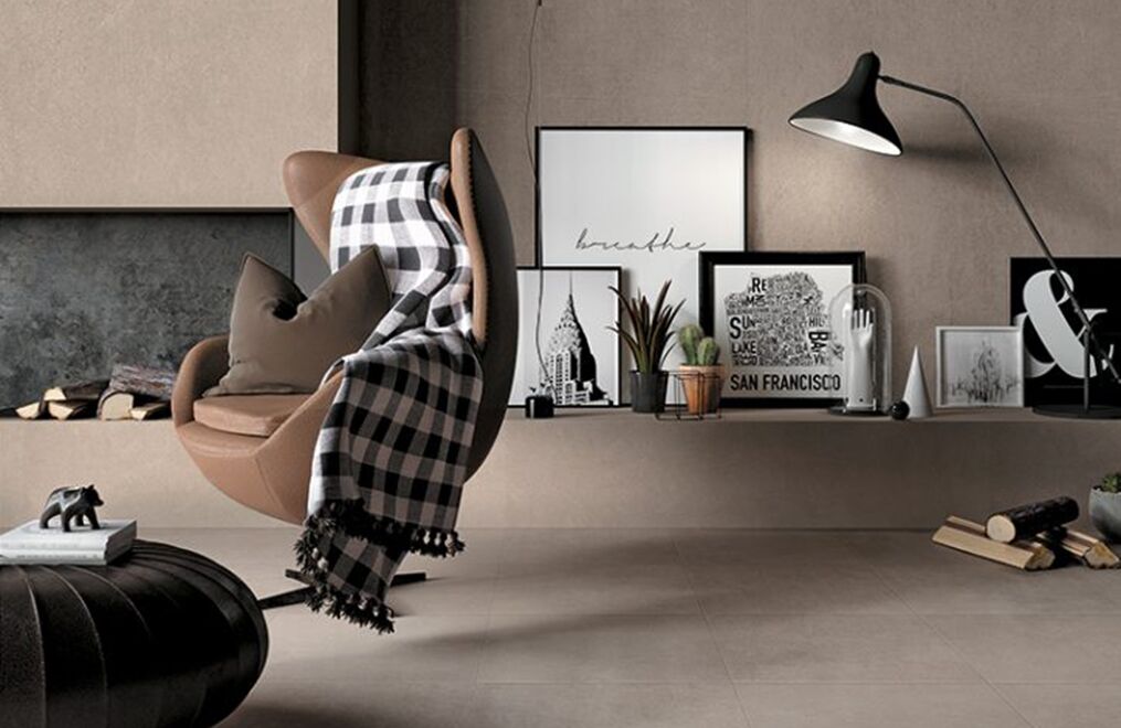 The power of concrete lies in the fact that it is a neutral, exceptionally versatile furnishing material, and in its ability to embody the whole material identity of the ceramic product, transforming it into a container able to bring out the very best in all types of finishes and furnishing elements. Mirage has fully exploited this characteristic feature of spattled cement, coming up with a light, delicate collection with clean-cut, yet profound textures reminiscent of the material in its most typically original guise, enhanced by a careful selection of subtle details.