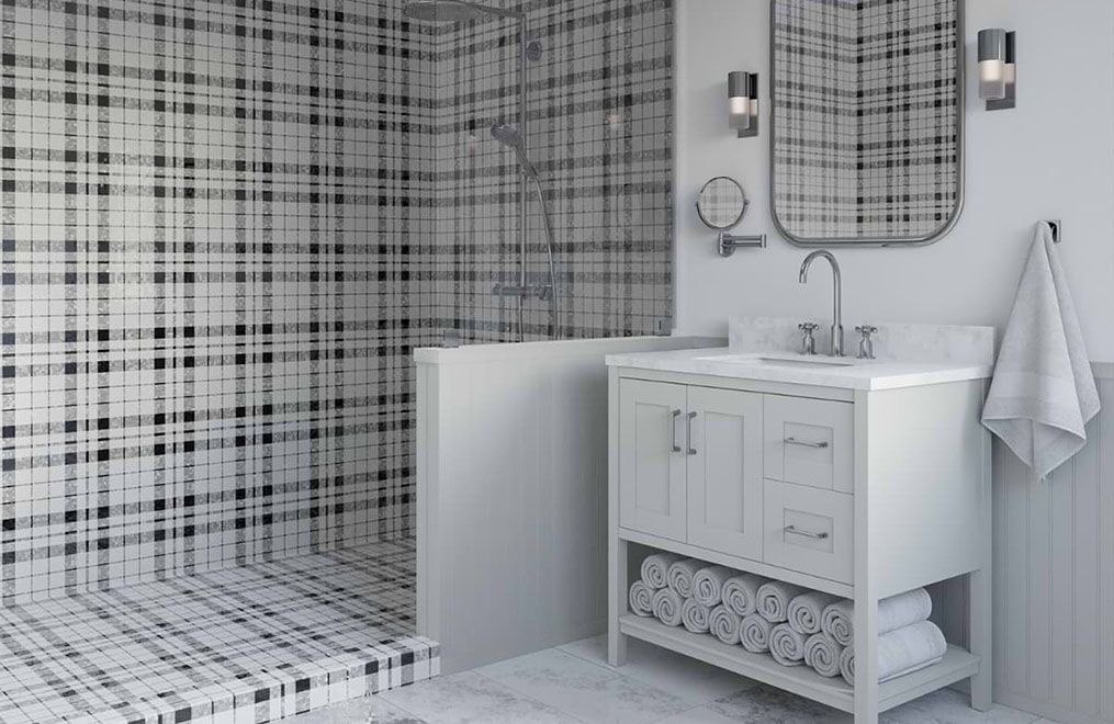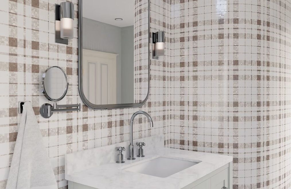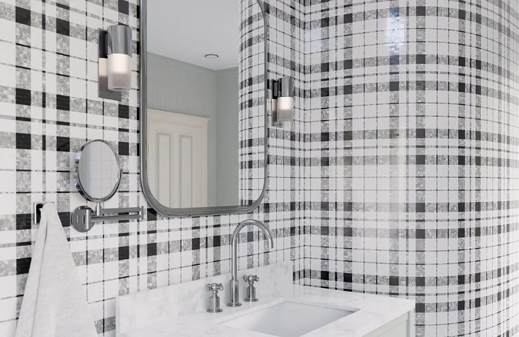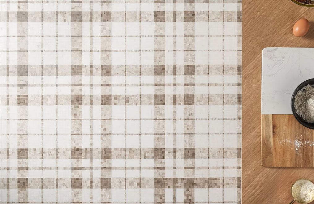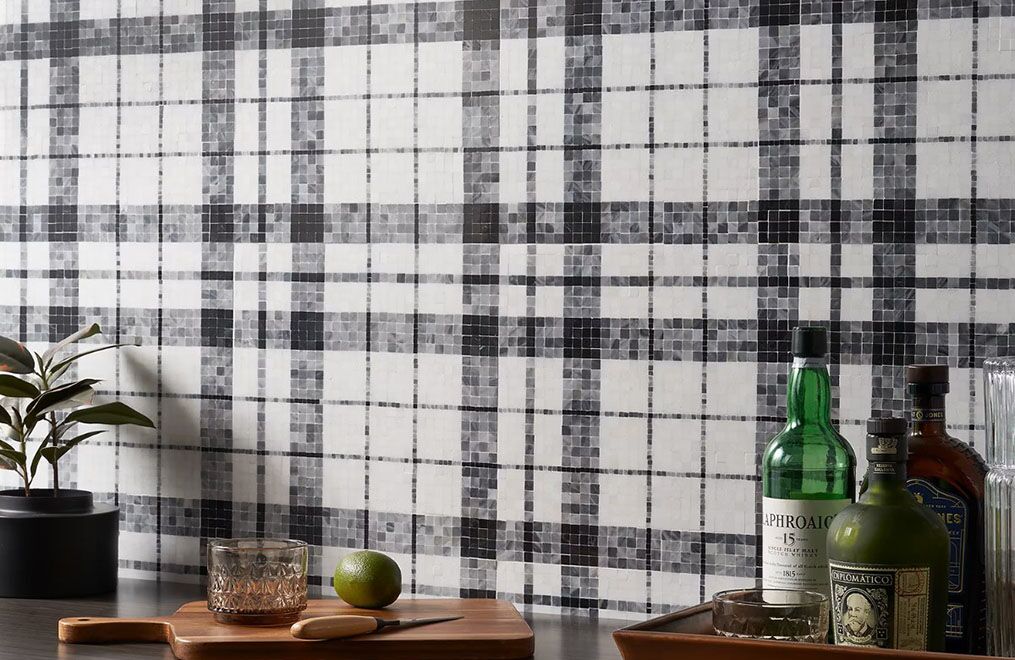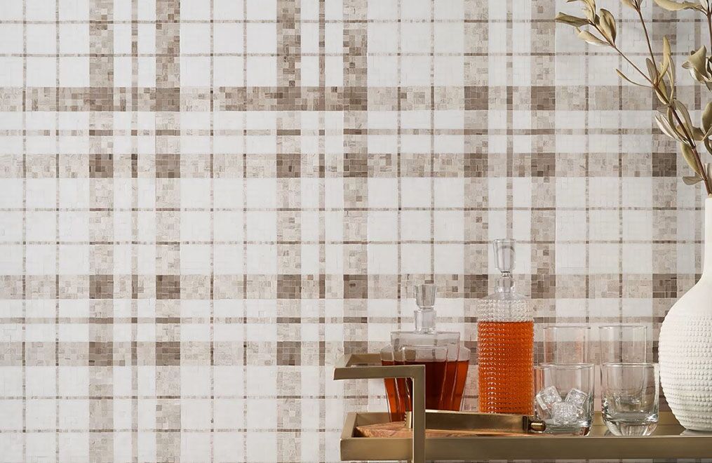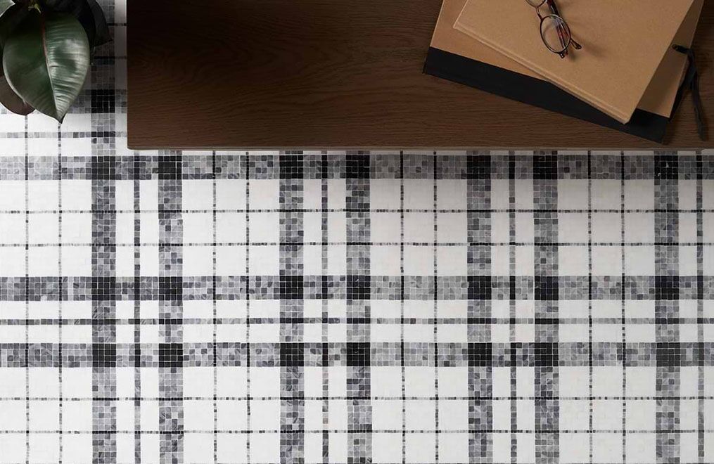 Tiny Micromosaic tile makes a larger-than-life impression in this contemporary interpretation of a classic plaid pattern. Rendered in marble, Micromosaic Plaid has deep roots in the history of design, yet the exclusive collection is unexpectedly fresh and versatile. Choose from two neutral and versatile colorways.