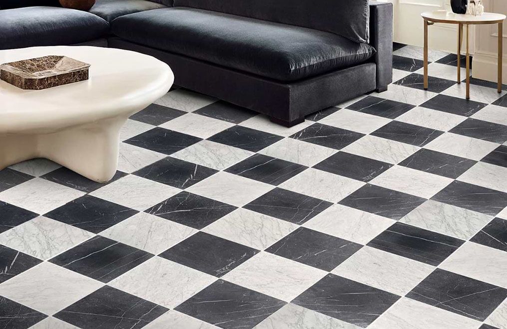 Marble checkerboard flooring is as timeless as it comes. Originally gaining popularity as flooring in European cathedrals in the Middle Ages, its heyday was Victorian-era England, gracing ballrooms, grand corridors, and stately municipal buildings. It then spread on a global scale, becoming so ubiquitous it’s now synonymous with the vintage American diner aesthetic. Today, it looks fresh, clean, and eternally stylish once more in premium marbles and sophisticated color combinations.