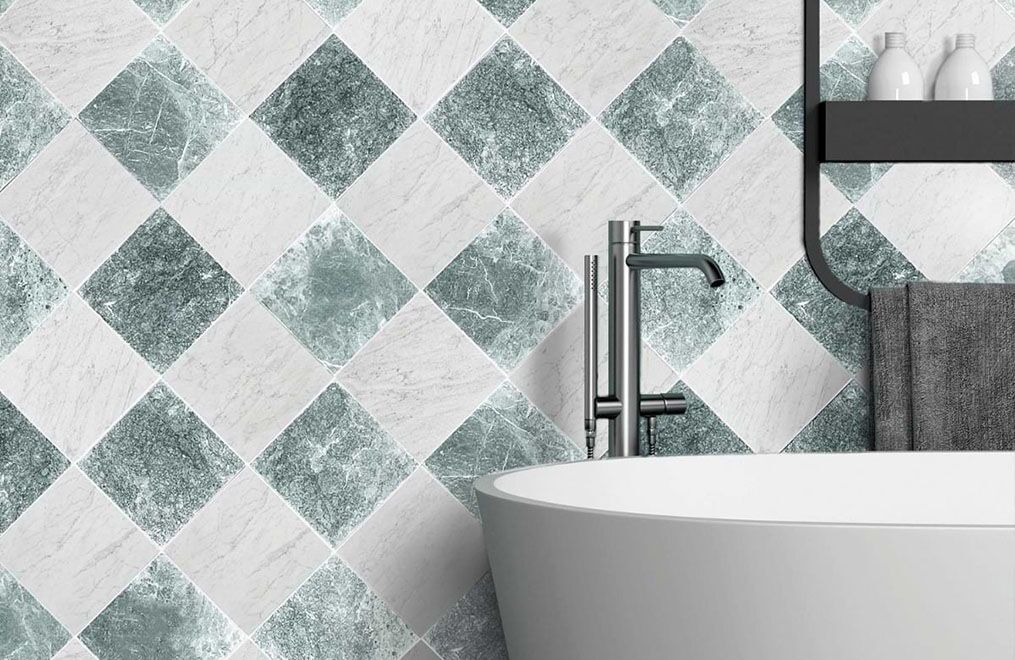 The Checkerboard collection is an ode to Victorian-era marble flooring. Crafted from premium, highly curated natural stone, a tumbled finish softens and antiques the marble’s surface, for all the patina with none of the wait. Classic checkerboard patterns in 12″x12″ size—whether grid, diamond, or offset—invigorate traditional and modern spaces alike.