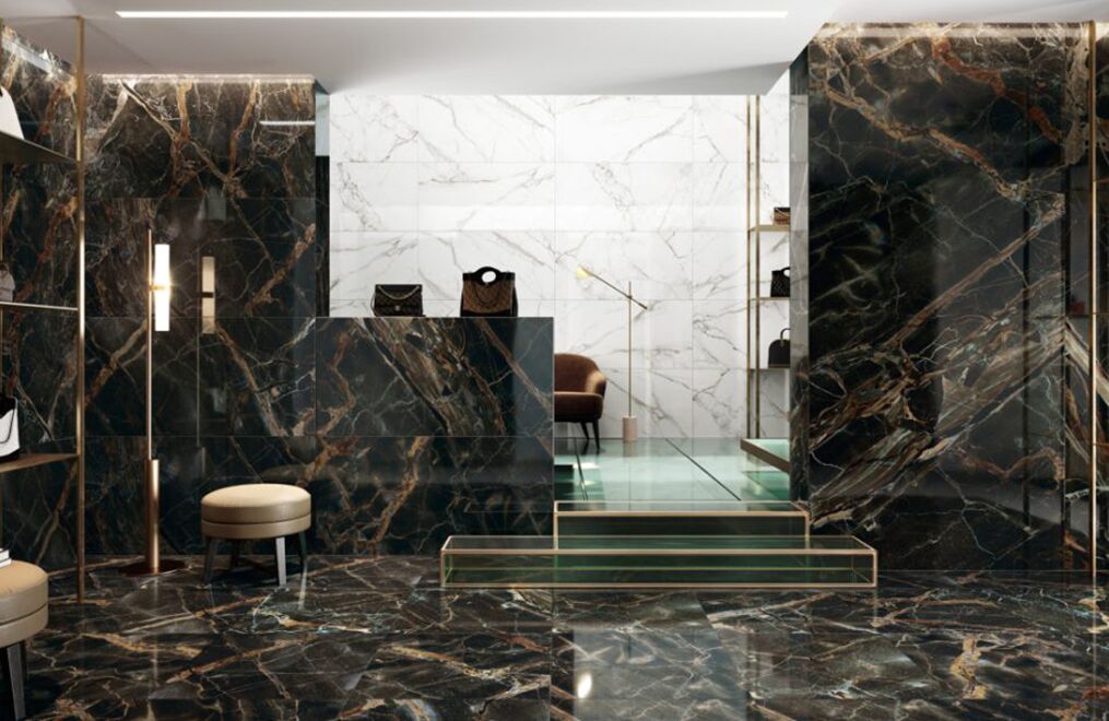 Rhapsody is a complete series for floors and walls whose colors and textures are inspired by the world’s finest marbles, the classical pure whites and the deepest blacks, enhanced by contrasting veining, as well as the unconventional marbles dominated by cobalt blue or striking gold veining.